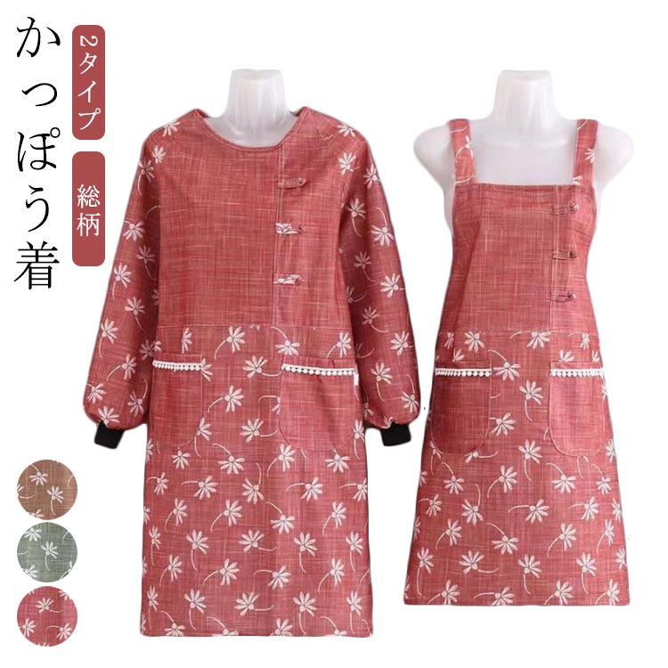 割烹着 かわいい オシャレ 可愛い おしゃれ かっぽうぎ かっぽう着 割烹着おしゃれ チュニック 保育士 レディース エプロン 袖付 ワンピース