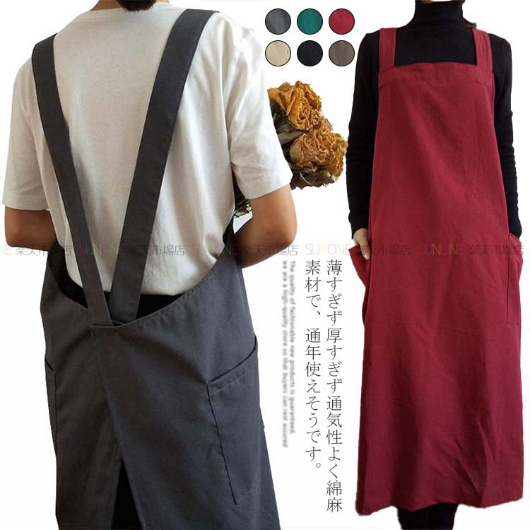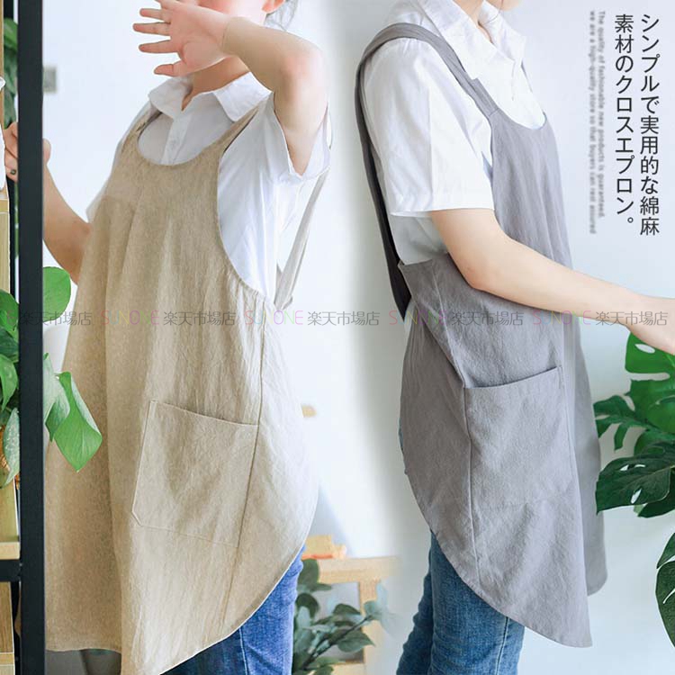 エプロン チュニックエプロン ワンピース キャミワンピ 綿麻 ロング丈 かぶるだけ おしゃれ ナチュラル シンプル カフェエプロン レディース ゆったり 大きいサイズ