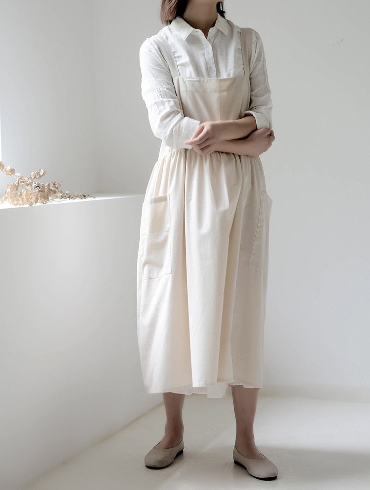 作業用 透けない ナチュラル エプロン おしゃれ ワンピース 綿100% 新登場 撥水加工 Modilan色 北欧風シンプルなデザイン、コットン素材のエプロンです