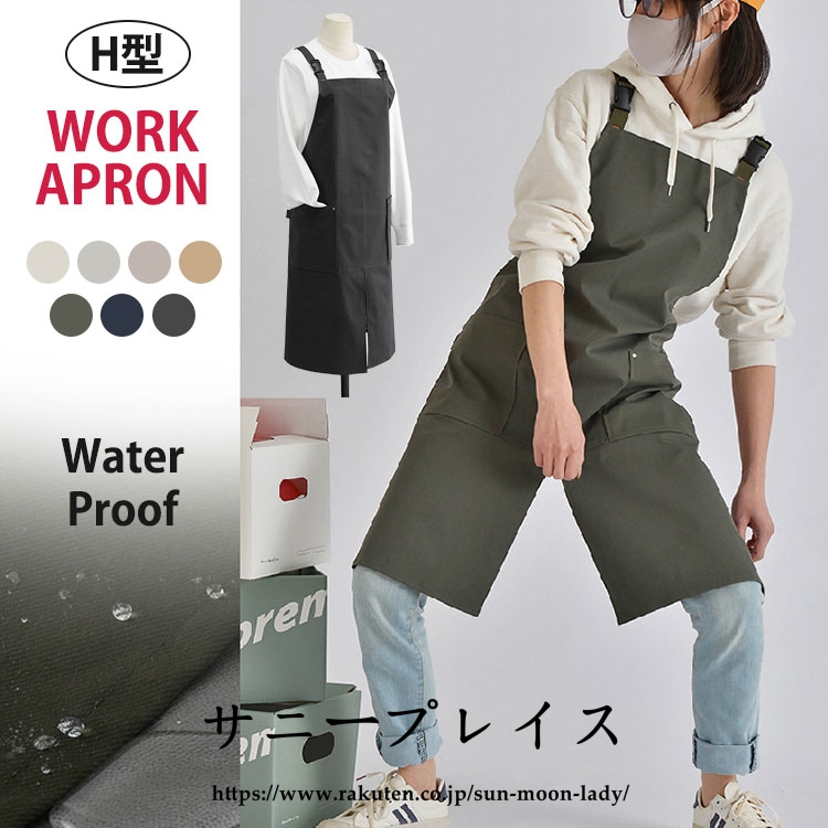 エプロン 作業用エプロン レディース メンズ男女兼用肩掛けエプロン防汚 耐油性 撥水加工おしゃれH型カフェエプロン 調節可能