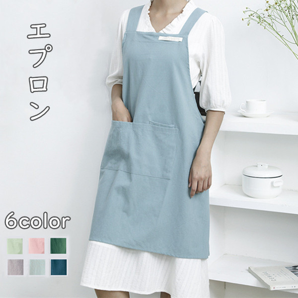 エプロン かわいい 可愛い 保育士 6color カフェ おしゃれ 料理教室 北欧 無地 レディース 大人 ナチュラル エプロン 無地ナチュラルなエプロン