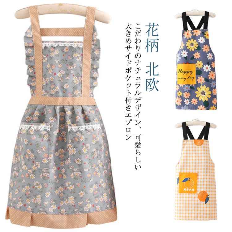 レディース 花柄 料理教室 ワンピースエプロン おしゃれ ドレス エプロン 保育士 かわいい ふんわり リボンエプロン シンプル オシャレな チュニック 美容師 かわいい 母の日 ギフト 保育士 幼稚