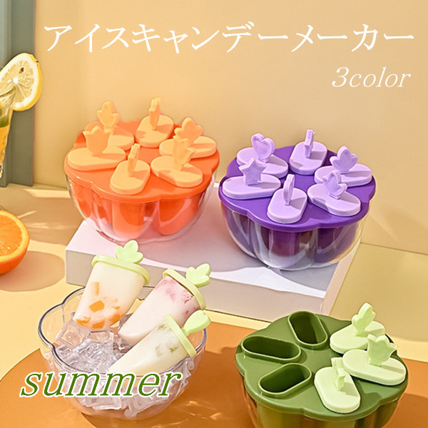 アイスキャンディーメーカー 3color アイスキャンデー型 製氷皿 アイス型 DIY アイスクリーム 夏 涼しい パーティ