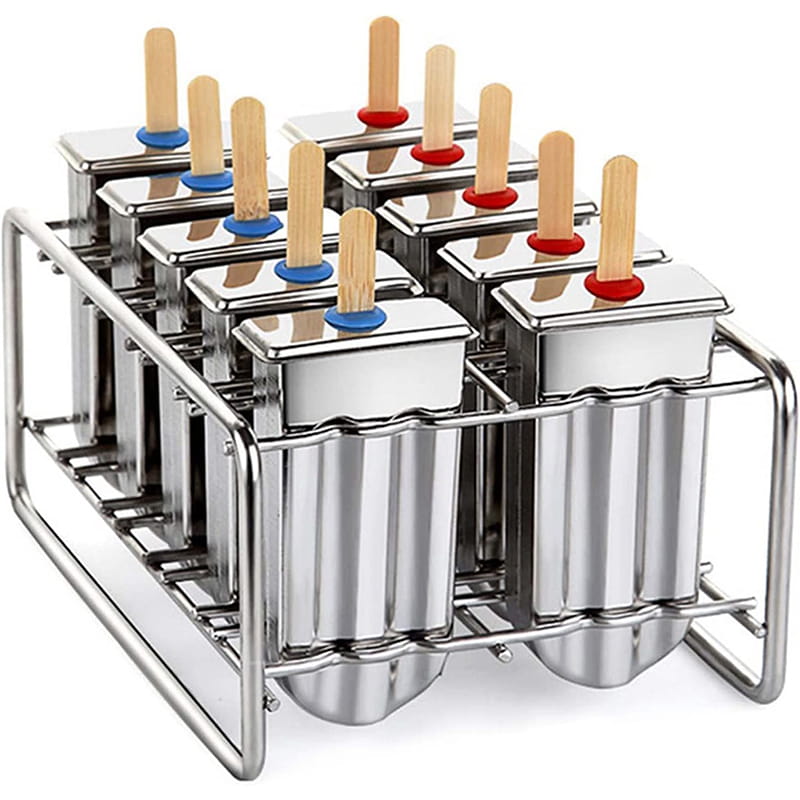 10個セット アイスクリーム型 ステンレス鋼 製氷器 製氷皿 蓋付き トレイラック付き アイスキャンデー 自家製 冷凍 手作り 家庭用 取出し簡単 高耐久 溶けにくい 再利用可能 安全健康 子