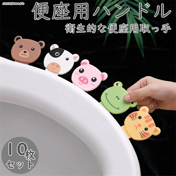 便座取っ手 10枚セット アイデア 衛生 アニマル 便座ハンドル かわいい 衛生的 清潔 感染防止 持ち手 飲食店 子ども キッズ 上げ下げ トイレグッズ 菌対策 小 トイレ ハンドル 取っ手 握りや