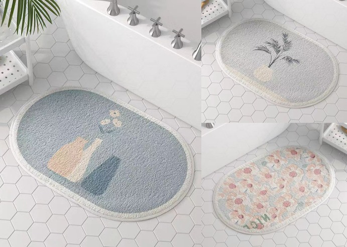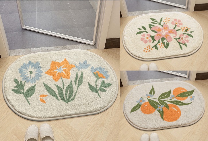 40cm×60cm花柄かわいいバスマット足ふきマットおしゃれ韓国雑貨インテリアマット速乾お風呂北欧絨毯かわいい洗える室内タオル地柔らかい滑り止め吸水シンプルロゴデザイン