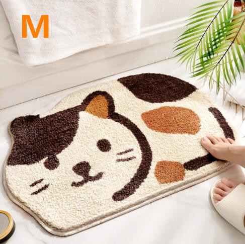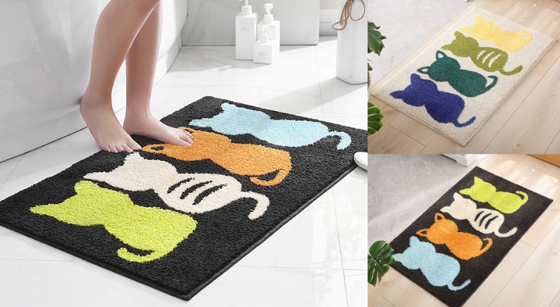 40cm×60cmネコちゃんカラフルバスマット足ふきマットおしゃれ韓国雑貨インテリアマット速乾お風呂 北欧絨毯かわいい洗える室内タオル地柔らかい滑り止め吸水シンプルロゴデザイン