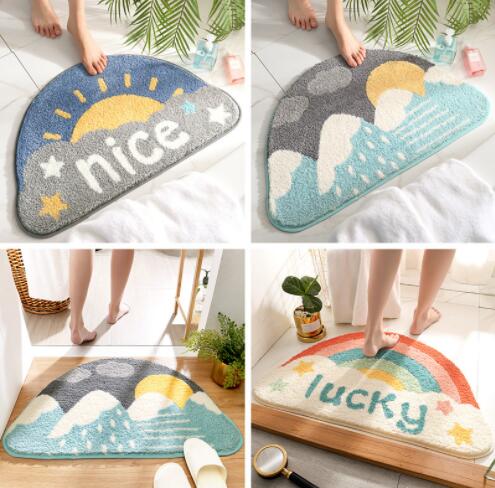 4076 半円 かわいい カラフル バスマット 足ふきマット おしゃれ 韓国 雑貨 インテリア マット 速乾 お風呂 グレー ホワイト ブラック 北欧 絨毯 かわいい 洗える 室内 タオル地
