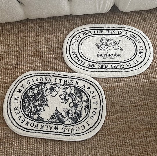 バスマット足ふきマット花柄ロゴおしゃれ韓国雑貨インテリアマットお風呂ホワイト白天使エンジェル北欧玄関マット絨毯洗える室内タオル地柔らかい滑り止め部屋ラグ 40cm×60cmモノクロモノトーン