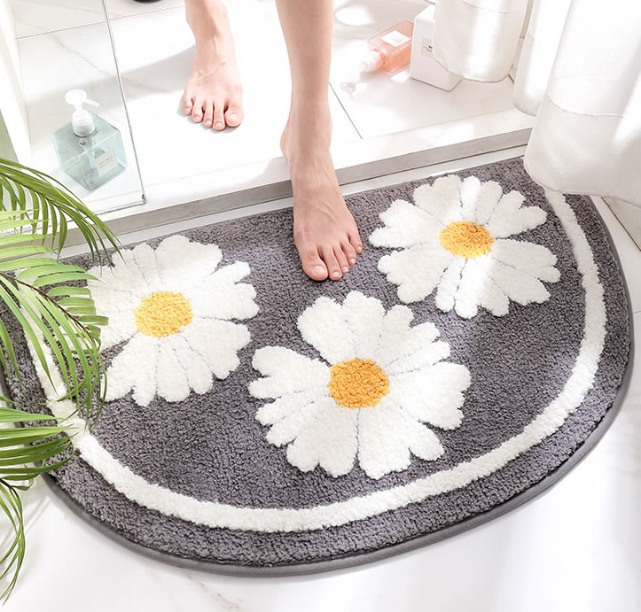 45cm×65cmバスマット足ふきマット花柄おしゃれ韓国雑貨インテリアマットお風呂グレーグリーンホワイト白北欧玄関マット絨毯かわいい洗える室内タオル地柔らかい滑り止めフラワー部屋ラグシンプル