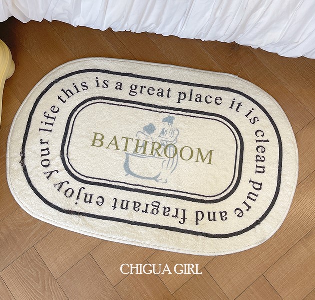 バスマット足ふきマットロゴおしゃれ韓国雑貨インテリアマットお風呂ホワイト白黒ブラック北欧玄関マット絨毯かわいい洗える室内タオル地柔らかい滑り止め部屋ラグシンプル40cm×60cm丸円大きい可愛い
