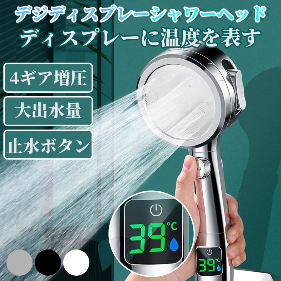シャワーヘッド マイクロ 節水 止水機能 節水80% 4段階モード 増圧 リアルタイムの温度表示 ミスト 美容 美肌 保湿 ホルダー 取付簡単 水漏れ防止 頭皮ケア 汚れ除去 2024