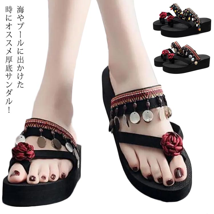 ウエッジソール ヒール 歩きやすい ビーチサンダル トング レディース レディース レジャー用 おしゃれ ビンテージ ビジュー 美脚 厚底