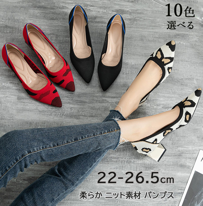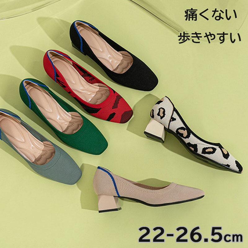 ニット素材のスクエアトゥフラットシューズ レディース ぺたんこ パンプス 痛くない 春夏 脱げない 春夏