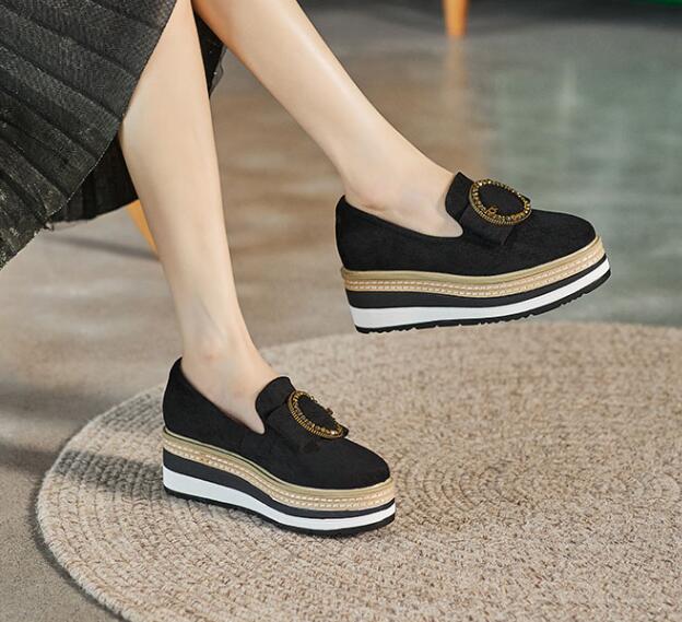 スリッポン ローファー モカシン 厚底 厚底靴 プラットフォーム ウエッジ 英国調 原宿系ファッション 韓国風ダンス 衣装 ヒップホップ 個性 奇抜 かわいい 青文字系 美足 脚長 シュ