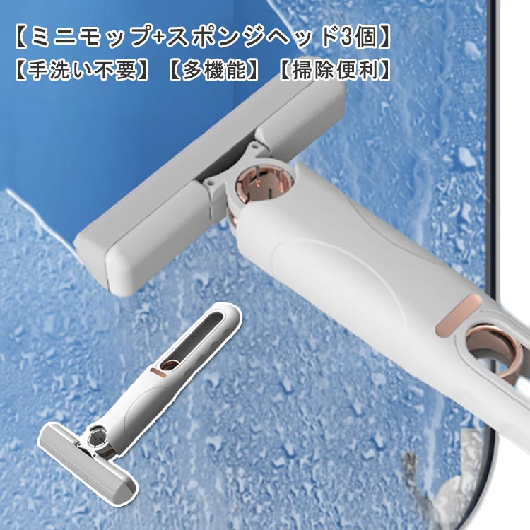 ミニモップ スポンジヘッド2個付き ドライ ウェット 水拭きモップ 便座掃除 デスクの掃除 ペットの尿 台所 ソファー