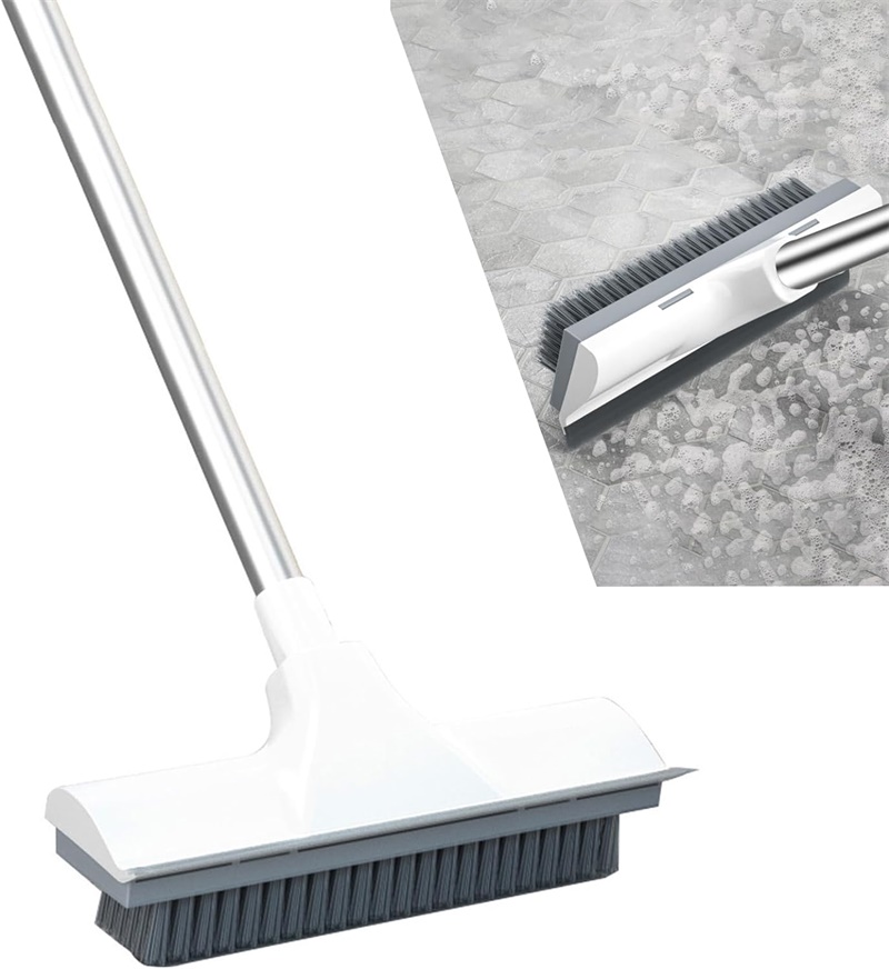デッキブラシ ベランダ お風呂掃除 ブラシ 掃除 2in1 風呂掃除 ブラシ 3段ポール 長さ調節可能 51cm-124cm 掃除ブラシ ベランダ プールとい お風呂 ブラシ 耐久性 外壁掃除ブラシ
