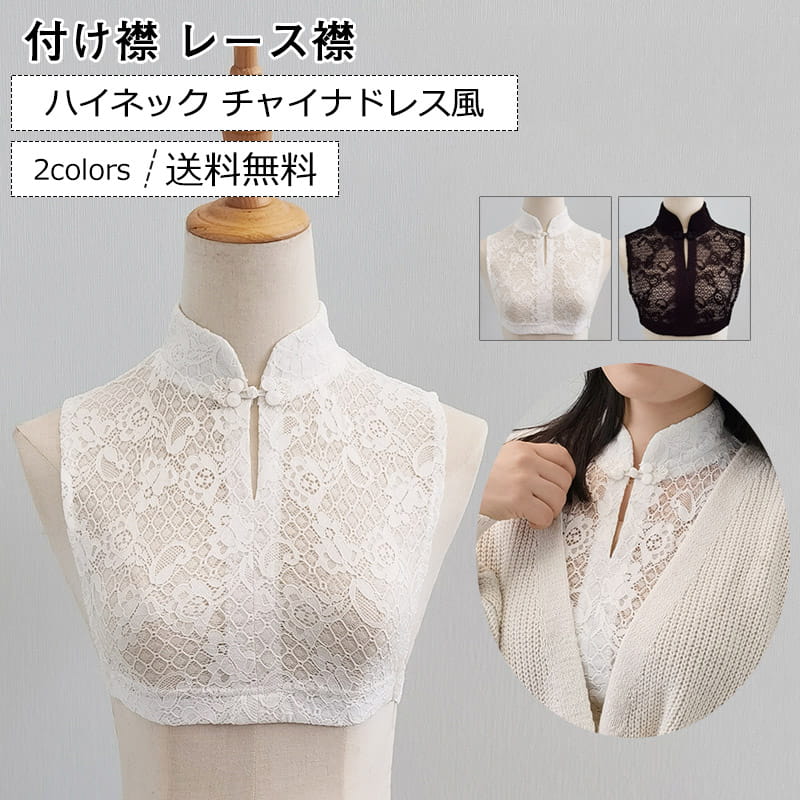付け襟 レディース フェイク襟 レース襟 ハイネック 立ち襟 花柄 刺繍 チャイナドレス風 偽の襟 装飾的な襟 エレガント きれいめ おしゃれ