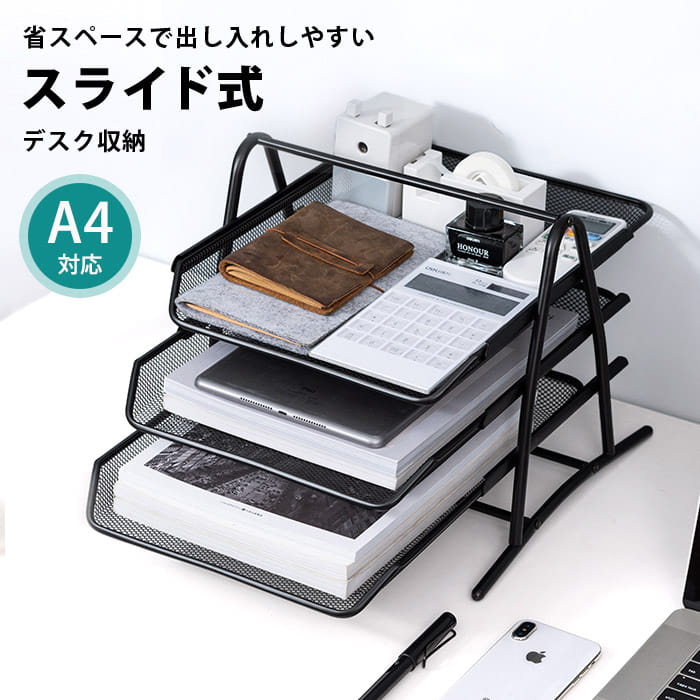 教科書や学校プリントの整理に使える4サイズ ファイルも整理して収納 在宅勤務でのデスク収納におすすめ3段なので見た目以上に大容量