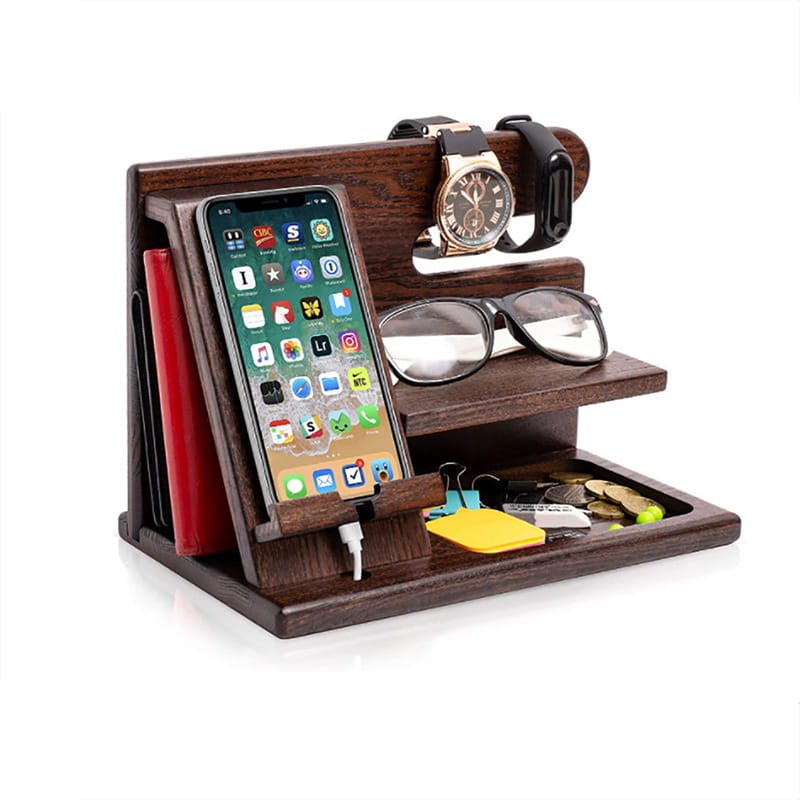 木製電話ドッキングステーション ウォレットスタンド 時計オーガナイザー 財布スタンド メンズギフト 夫婦 記念日 父の日プレゼント 男性 誕生祝プレゼント 組み立て式