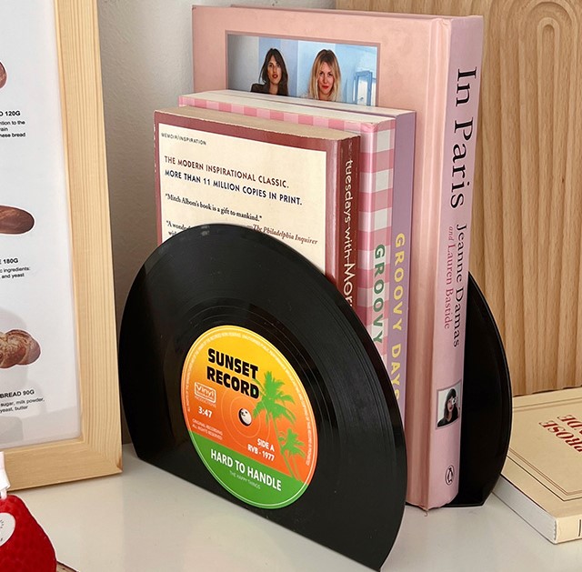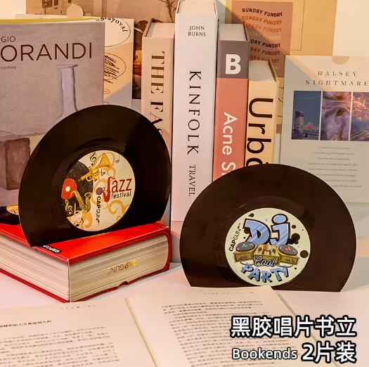 2点セットレコード風ブックスタンド本収納インテリア雑貨韓国北欧おしゃれかわいい卓上本立て本棚スタンドブックシンプルブックエンド仕切り整理ブックシェルフケースアンティーク黒ブラックレトロ倒れない