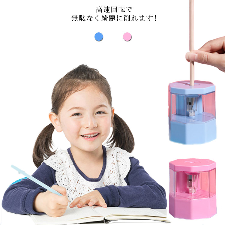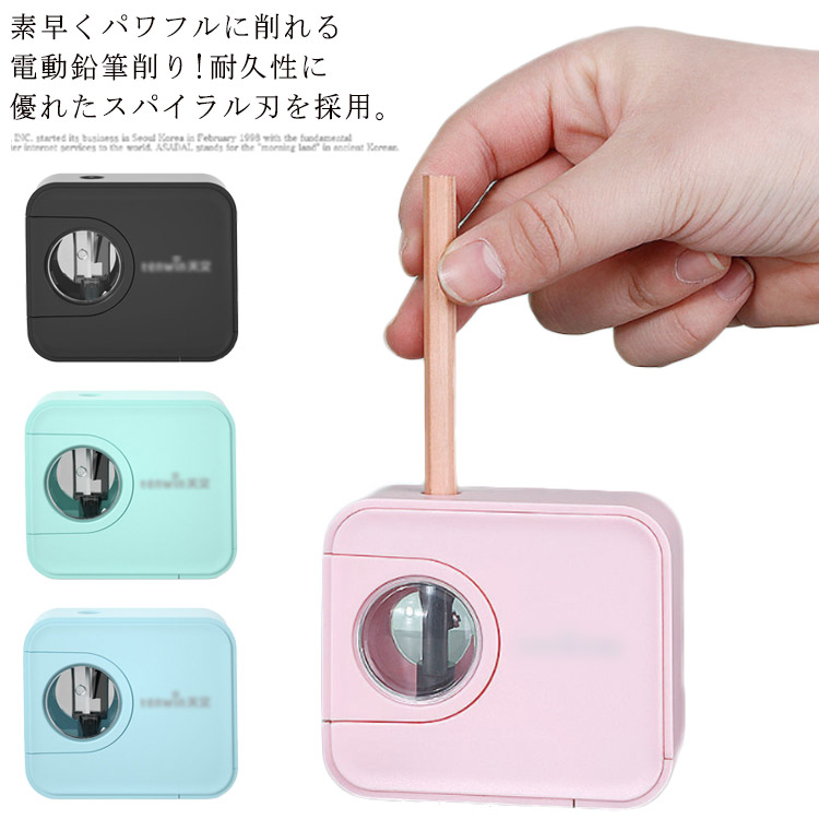 鉛筆けずり 電動鉛筆削り お子様でも簡単 電池 USB接続 乾電池 家 小中学生 えんぴつ削り 喜ぶ 勉強 大人も使いやすい 職場 簡単 USBコード付属 安全 替刃付属