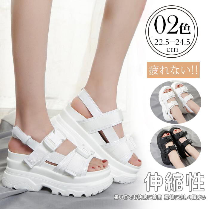 約5cmヒールで美脚 脚長効果も抜群万能夏用サンダル今夏に大人気な厚底スポーツサンダル どんなコーデとの相性もバッチリ 歩きやすい軽量