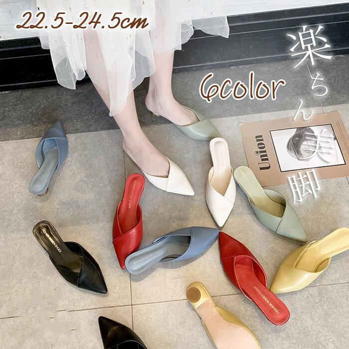 6色 ミュール レディース サンダル ポインテッドトゥ 低反発 痛くない 履きやすい 歩きやすい シンプル 柔らかい スリッポン ローヒール 快適 ブラック レッド グリーン ブルー ベージュ イエロ