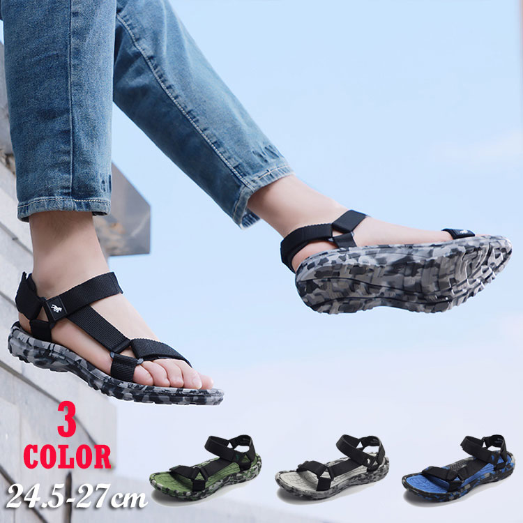 スポーツサンダル メンズ コンフォート サンダル 24.5 25 25.5 26 26.5 27 マジックテープで調整可能