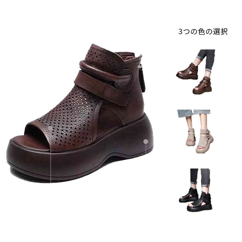 ブーツサンダル レディース 歩きやすい 厚底サンダル ショートブーツ コンフォート 春夏 通気性 カジュアル 美脚靴 おしゃれ