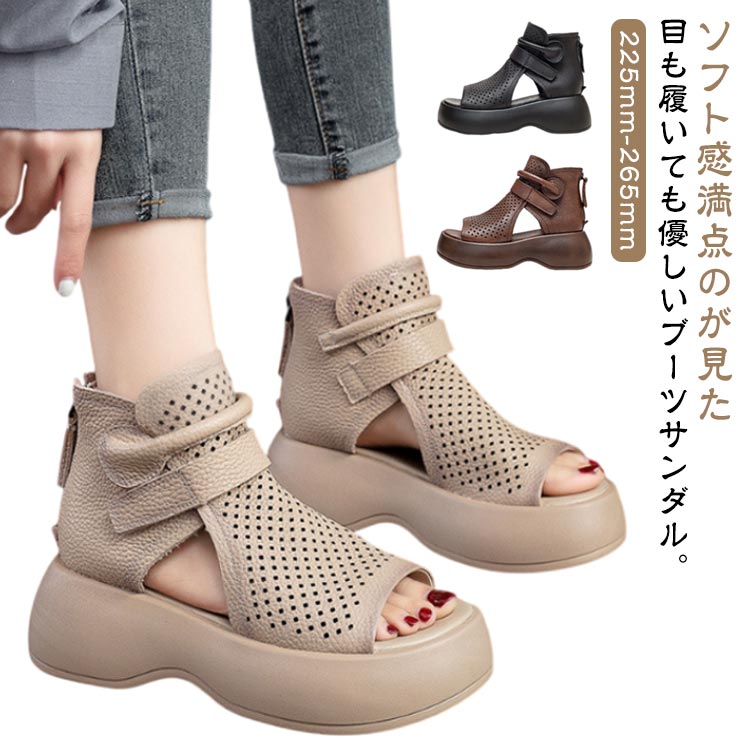 内寸225~245mm ブーツサンダル 厚底 歩きやすい オープント ブーツサンダル靴 レディース靴 サンダル ブーツサンダル