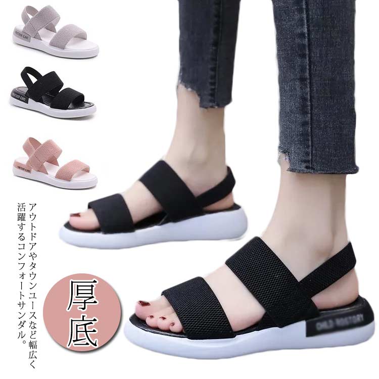 サンダル 厚底 美脚 ぺたんこ スポサン 歩きやすい 通勤 アウトドア靴 レディース靴 サンダル コンフォートサンダル