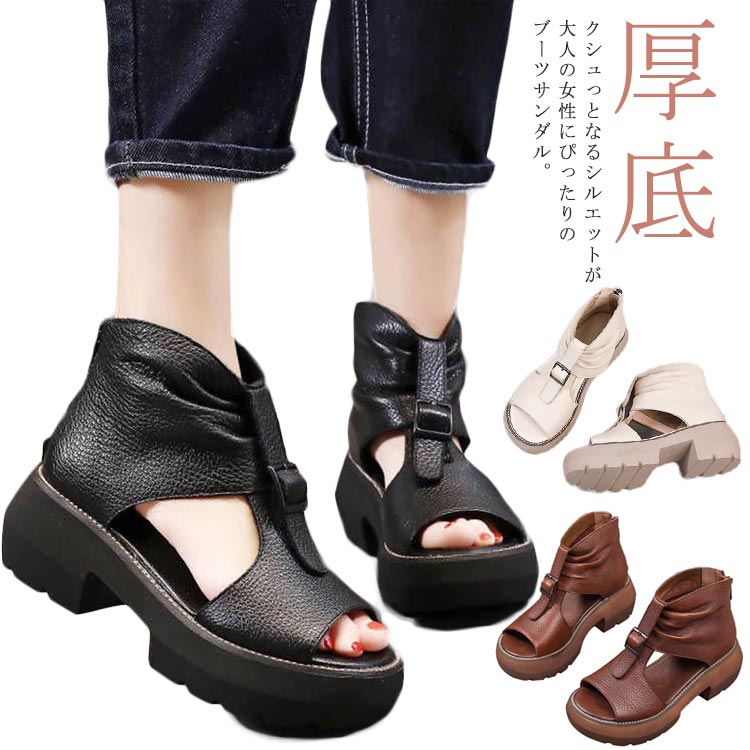 ブーツサンダル おしゃれ 厚底 オープントゥ サンダル 革 ブーサン 夏 ブーツ 足元を華やかに演出♪