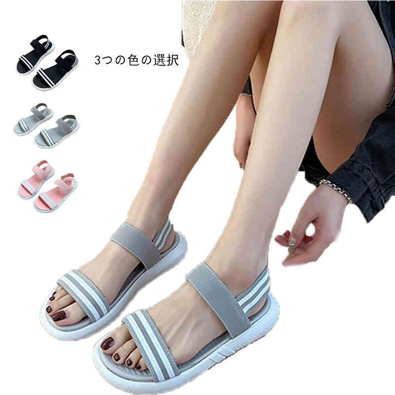 スポーツサンダル 春夏 シューズ ぺたんこ カジュアル 靴 大人 柔らかい 滑り止め サンダル アウトドア ストライプサンダル