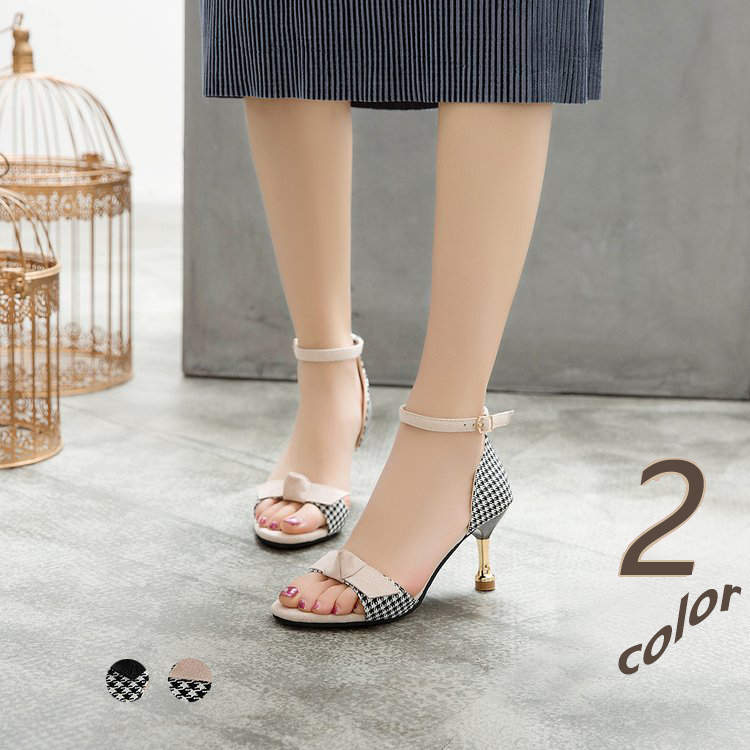 ハイヒール レディース 夏 パンプス ピンヒール ラウンドトゥ プレゼント チェック レースアップ パーティー 靴 痛くない