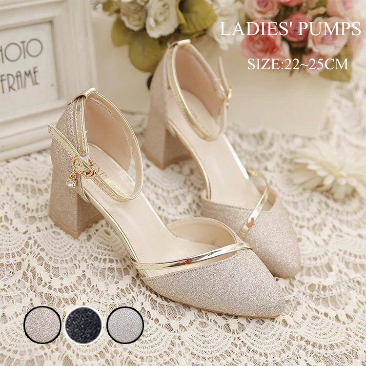 パンプス レディース ハイヒール サンダル 太めヒール 発表会 パーティーシューズ お出掛け ストラップ ポインテッドトゥ お呼ばれ 通学 通勤 フォーマル 女子靴
