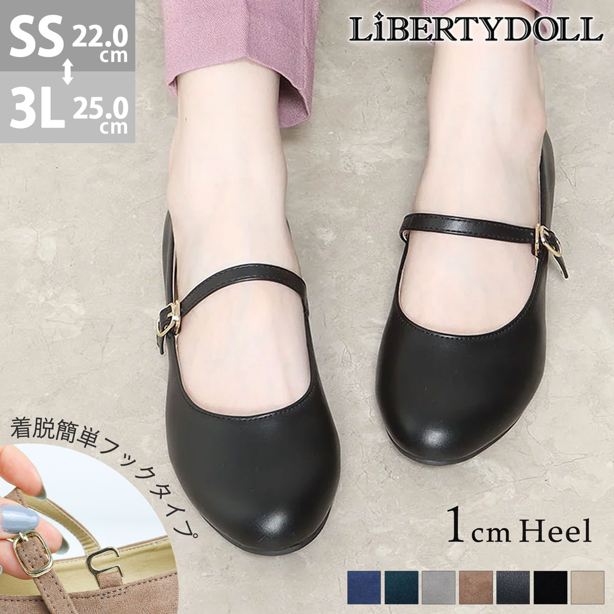 パンプス 痛くない ストラップ ローヒール スエード ラウンドトゥ ぺたんこ フラットシューズ ローヒール セレモニー 発表会 スーツ 青