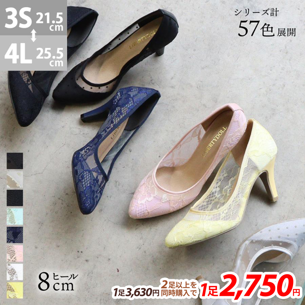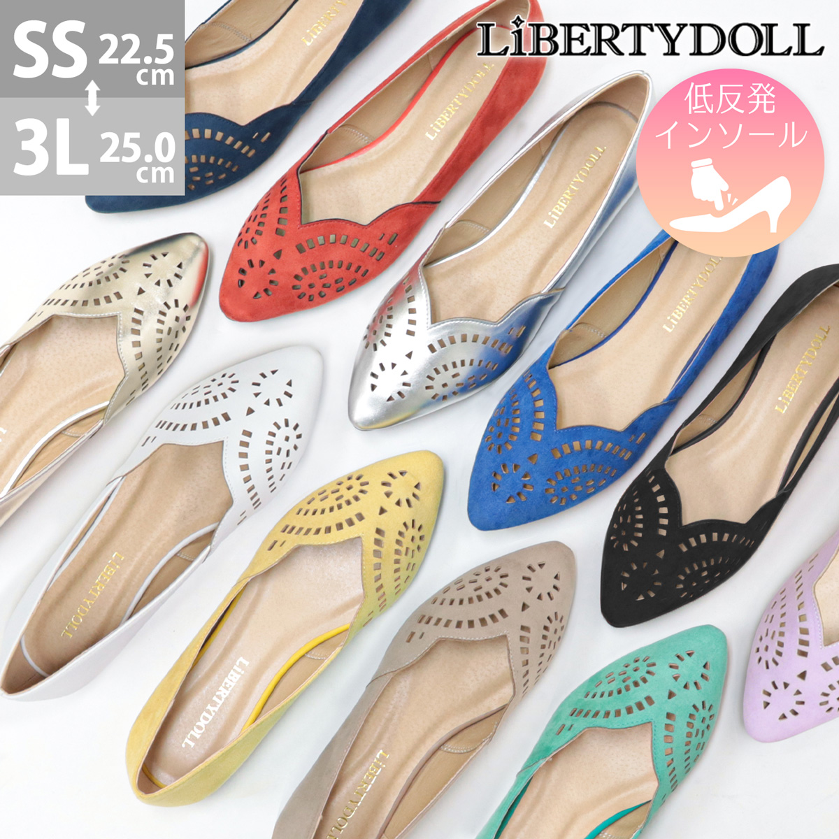 パンプス 履きやすい 楽 ぺたんこ 美脚 仕事 フォーマル セパレート サイドオープン グレー ネイビー チュール グリッター 赤 青 リバティードール