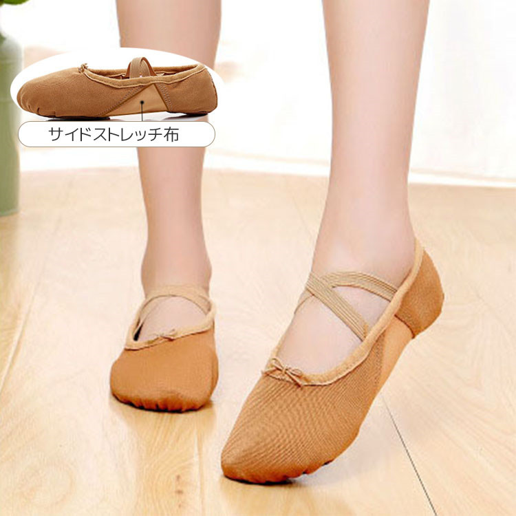 ダンスシューズ バレエシューズ 女の子 子供靴 ダンス ヨガ フォークダンス シンプル レディース 大人 履きやすい 柔らかい 練習用 ステージ レッスン 布製 キャメル ピンク -296