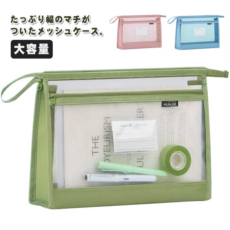 ソフトメッシュケース 4サイズ 収納 小学校 旅行 トラベル ファイル バインダー 文房具 事務用品 雑貨 文具