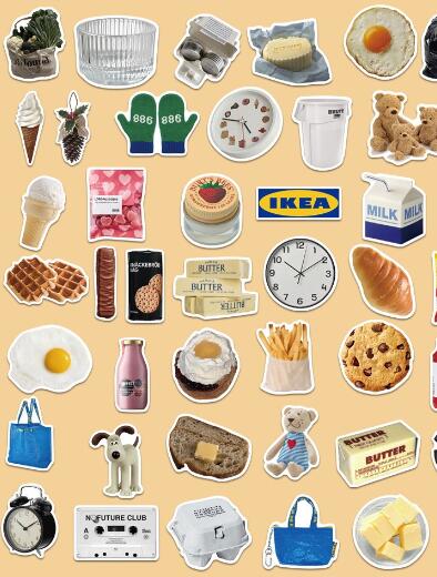 25枚入りステッカーセット韓国おしゃれかわいいスマホ四角正方形丸スーツケース大量パソコンiPhone携帯手帳キャラクター動物ロゴイラスト白ピンクイエローロゴレトロくまベア牛食べ物