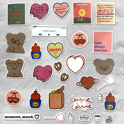 25枚入りステッカーセット韓国おしゃれかわいいスマホ四角正方形丸スーツケース大量パソコン携帯手帳キャラクター動物ロゴイラスト白ピンクイエローロゴレトロくまベア牛食べ物