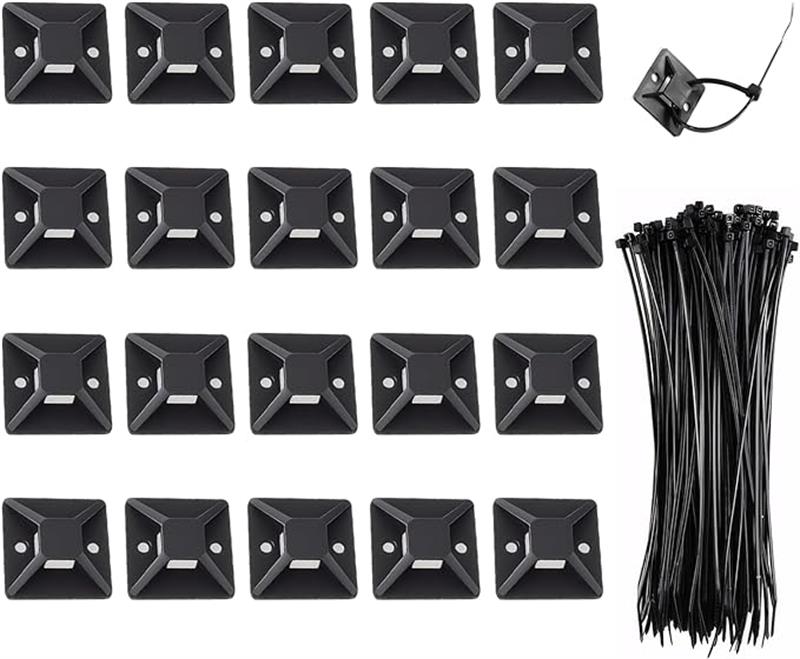 ケーブルタイ 結束バンド 100 入り 20マウントベース コード 収納 ケーブル結束バンド 屋外 耐久 ケーブル バンド 固定バンド コード纏め ナイロンテープ 配線 テープ ケーブル 固定