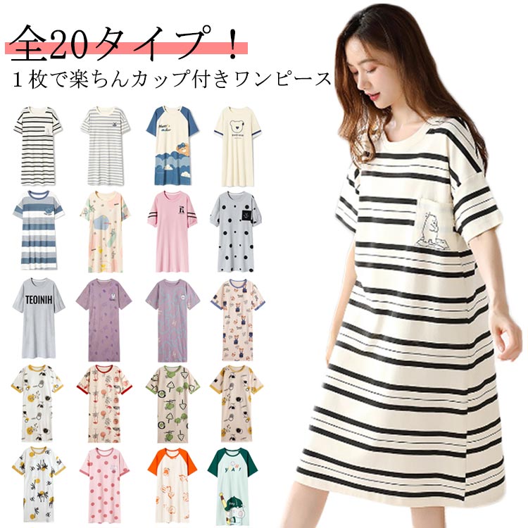 カップ付き ルームウェア 夏 半袖 ワンピース パジャマ 部屋着 ナイトウェア 寝巻きインナー 下着 ナイトウェア レディース ナイトウェア ルームウェア パジャマ