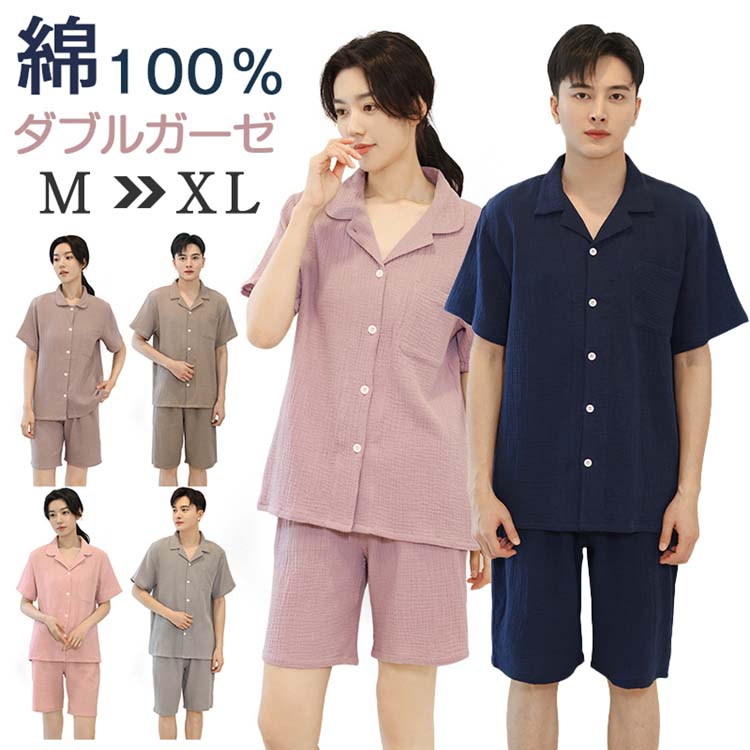 パジャマ メンズ 半袖 綿100% 二重ガーゼ セットアップ 上下セット ルームウェア ロングパンツ 無地 肌に優しい シンプル
