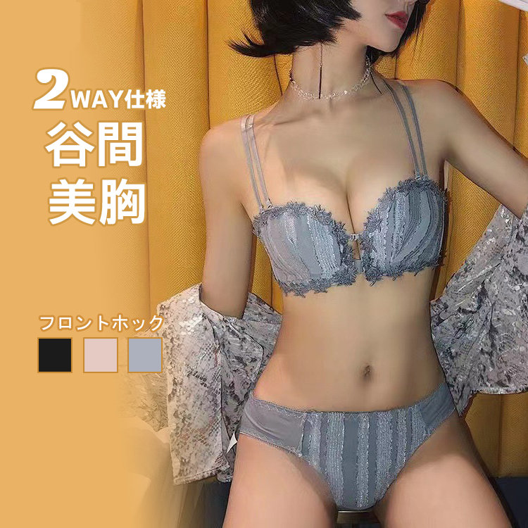 ブラショーツ フロントホック 美胸 美背 脇高 総レース 谷間 盛れる 育乳 バストアップ 補正 セクシー ブラジャー ショーツ ランジェリー 2WAYフロントホック ノンワイヤー 前ホック