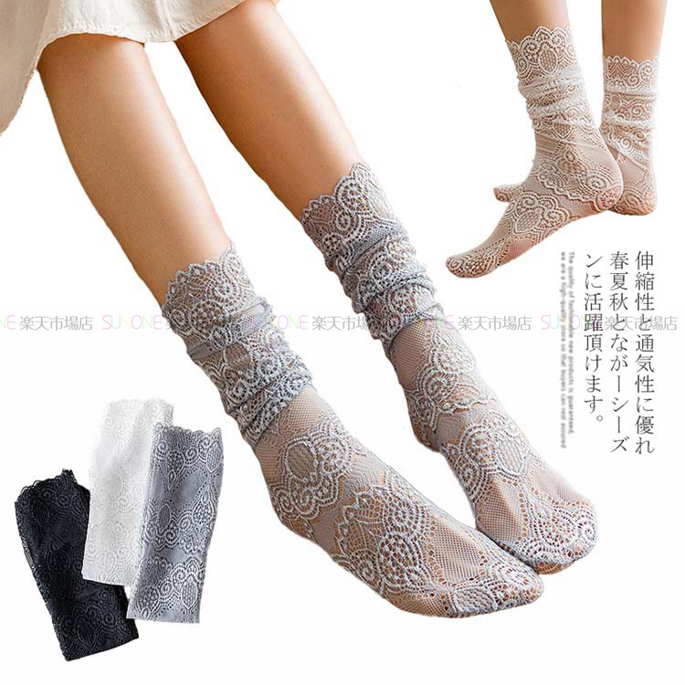 ソックス レース くつ下 フラワー シースルー 透け パンプス クルーソックス レディース 女性用 靴下 おしゃれ かわいい ガーリー フェミニン お出かけ レッグウェア
