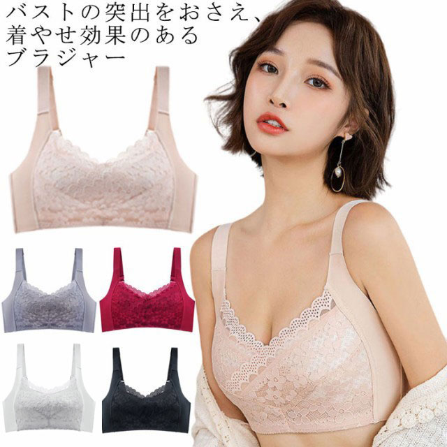 小さく見せるブラ レース ノンワイヤーブラ 着やせ フルカップブラインナー 下着 ナイトウェア レディース インナー 下着 ランジェリー ブラジャー