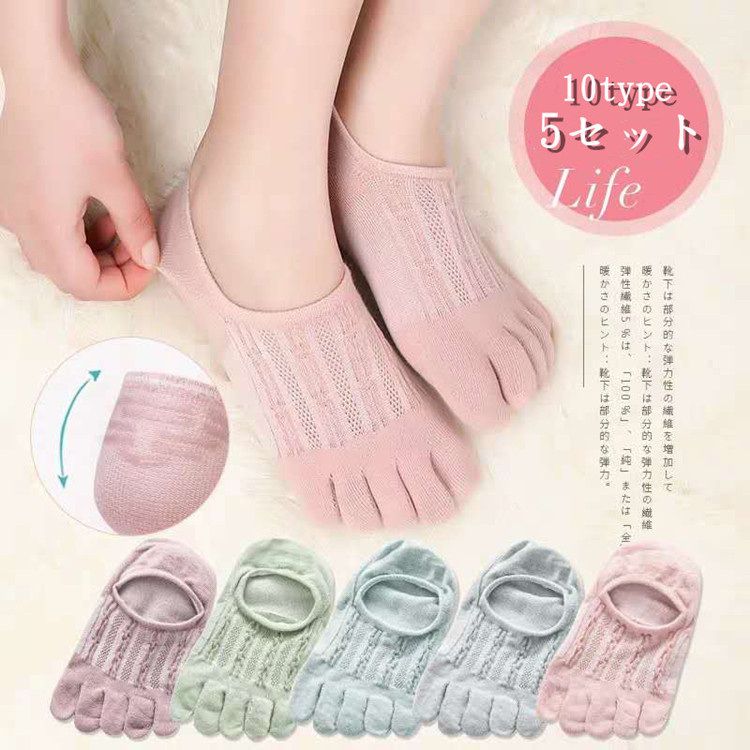 4足組 靴下 五本指ソックス 女子 ショート丈 インナーソックス 綿コットン セット 2023新作 隠れ 靴下レディース 足のムレ対策 足の蒸れ防止 見えないフットカバー 全7色 夏アイテム