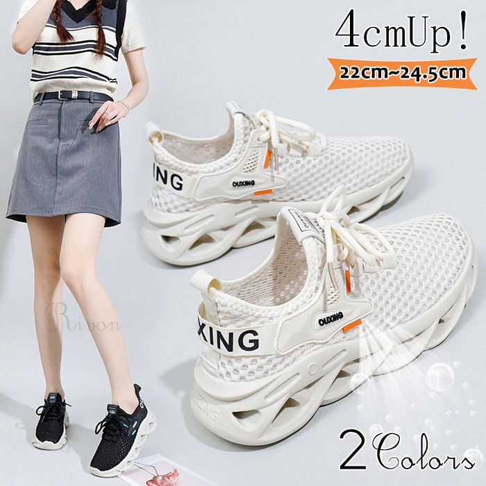 4.5身長アップ 厚底スニーカー レディース メッシュ 軽量 防滑 通気性 カジュアル 蒸れにくい 夏 歩きやすい 疲れない
